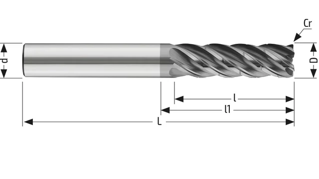 Keményfém dinamikus 5 élű 3XD maró - D16.00/56.00 d16 - Cr 1.00