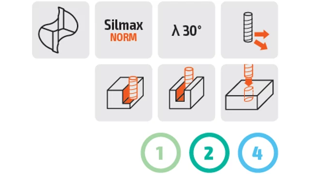 | Megmunkálandó anyag | Acélokra 1100 N/mm2-s szakítószilárdságig, Rozsdamentes acél |