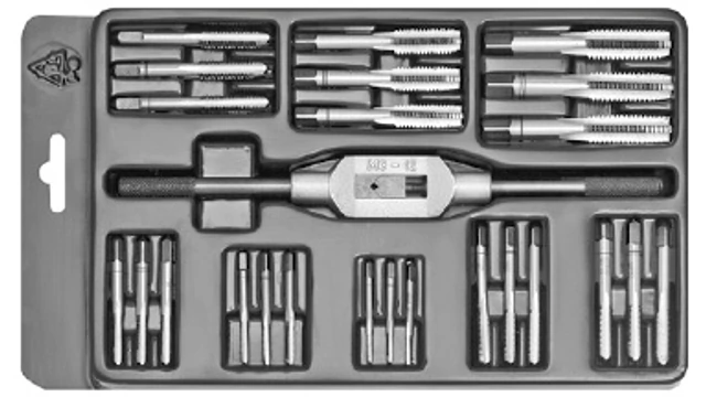 Gépi menetfúró egyenes hornyú készlet HSS - M3-M12 + Fúrók